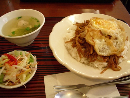 このビル、古いよなーって食事と関係ないことを思ってしまう。天井も低いし店員が歩くたびに上下にゆれる。