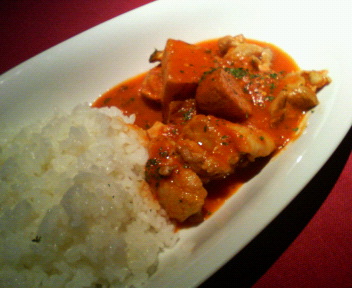 チキンとポテトがトマトソースで煮込まれた感じでした。