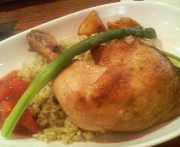 チキンは皮パリパリ、骨からほろりと肉がとれるのはイイ感じ。