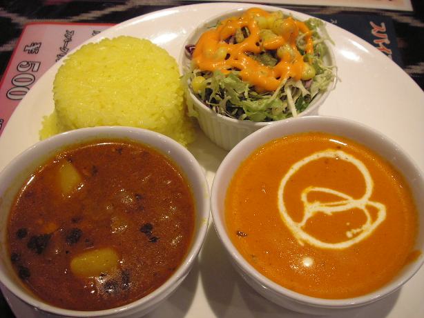右:バターチキンカレー、左:豆カレー