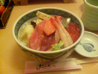 甘エビ、いくら、サーモン、赤み、中トロ(たぶん)あじ、卵がのってこの値段。
