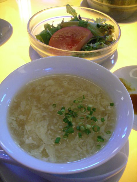 サラダ、スープはいたって普通。杏仁豆腐はうっすい水っぽい杏仁でした。