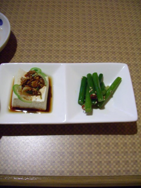 小皿のお豆腐やにんにくの芽おいしいなー。家でもできないかな。