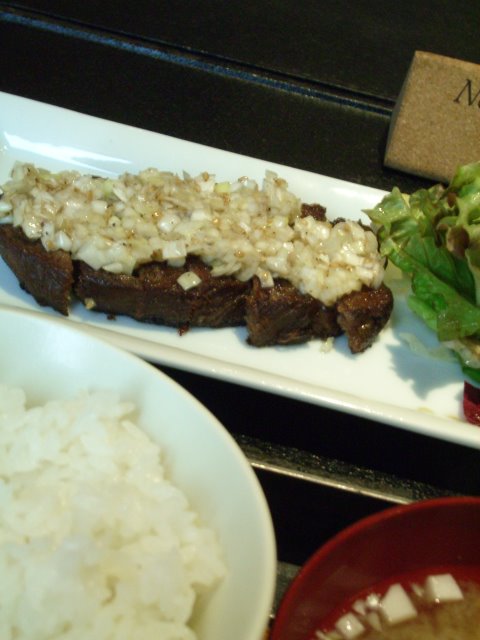 お味噌汁は、乾燥わかめだけですし、牛タンは焼けすぎてて塩がつよい。となりレタスだけですもん。